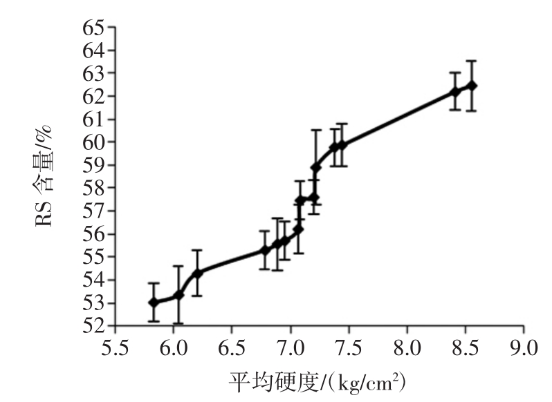 每次时间段取样取出的青香蕉测量完硬度后取样、打浆、装进即封袋,编号,冷冻于冰箱中,冷冻温度为-18℃。测定RS纯度时采用AOAC法(AOACMethod 2002.02)[9]。
