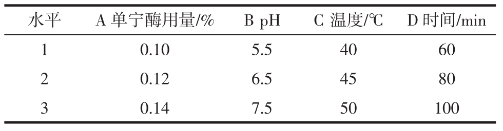 根据单因素试验的结果,设计四因素三水平正交试验优化单宁酶解的工艺。
